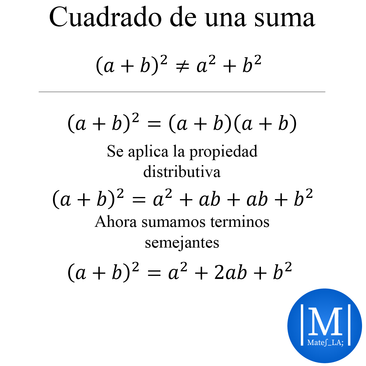 A veces el camino fácil o mas obvio no es siempre el correcto, una suma al cuadrado es el claro ejemplo de ello. Analicemos pues cual seria la solución general adecuada para este problema.